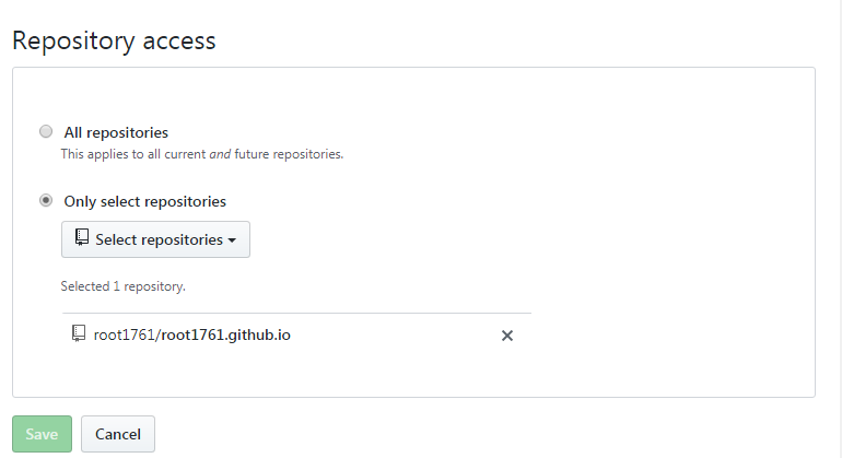 首先安装这个 App ,选择要关联评论的仓库。可以选择所有仓库,也可以只选择一个仓库。选择一个仓库比较安全
