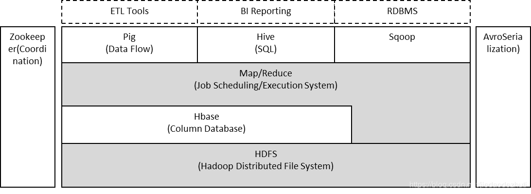 Hadoop由HDFS、MapReduce、HBase、Hive和ZooKeeper等成员组成,其中最重要的是底层用于存储集群中所有存储节点文件的文件系HDFS(Hadoop Distributed File System)和上层用来执行MapReduce程序的MapReduce引擎