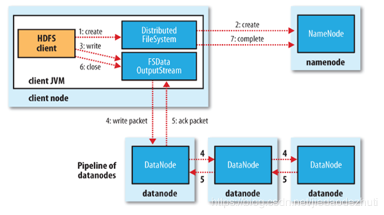 3.Client将文件划分为多个文件块,根据DataNode的地址信息,按顺序写入到每一个DataNode块中
